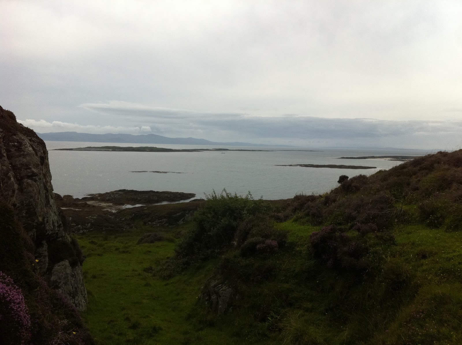 We were very aware of the tides so we headed off inland beside the Mesolithic Shell Mound to rejoin the track at Eilean Fhionnalaidh.